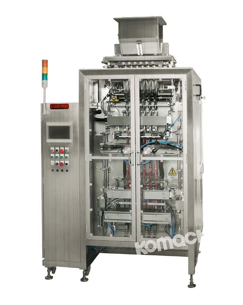 本機(jī)是對充填顆粒以及粉末專用而開發(fā)的多列式條狀包裝機(jī)。將要使用的薄膜卷安裝在本機(jī)上,在指定列上分割薄膜后,分別制成筒狀長袋,同時間歇自動計量充填包裝,操作簡單可靠,袋長、袋寬均可調(diào)。光電控制精確。因采用滑板或螺桿式計量裝置,每列充填量均可調(diào)。本機(jī)適用于批量及大量生產(chǎn)產(chǎn)品的場合。